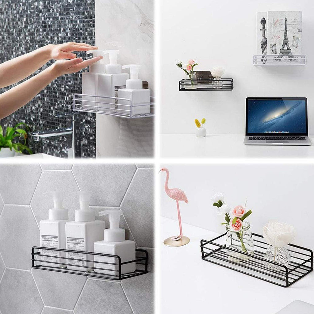 • no drilling and damage to a wall, and requires no additional tools. The packaging contains one piece of shelf with two adhesive stickers, just peel off the sticker cover and install. A powerful transparent adhesive hook, that sticks to the surface for a long time, is more durable and stronger.