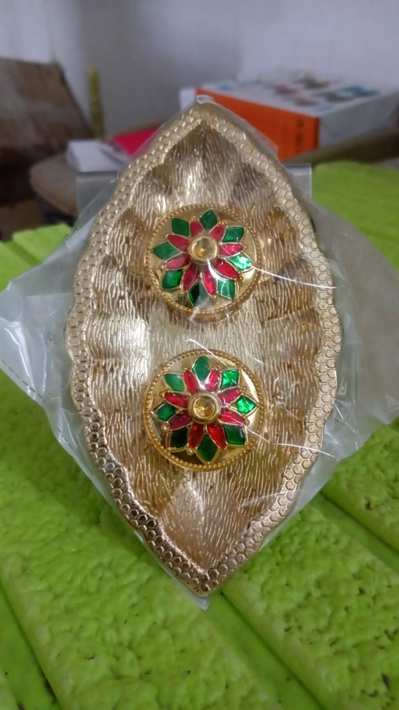 Leaf Shape Special Puja Thali, Kumkum Thali Holder, Pooja Return Gift, Indian Housewarming Gifts, Brother / Bhai / Bhabhi / Sister / Family for Diwali (1 Pc / Mix Design)