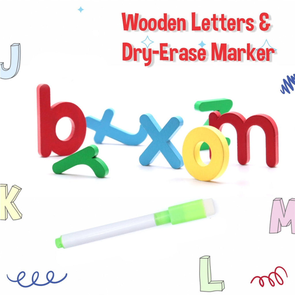 Spelling Genius Game for Kids, Wooden Alphabet Blocks with Wipe & Clean Cards, Early Educational Spelling Game for Kids Above 3 Years (1 Set)